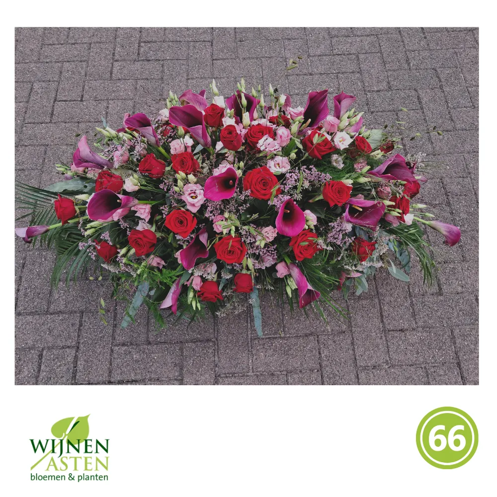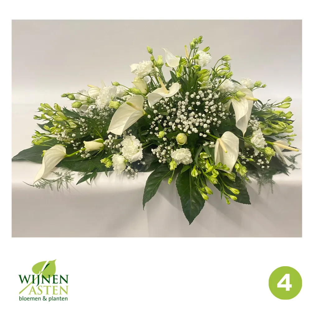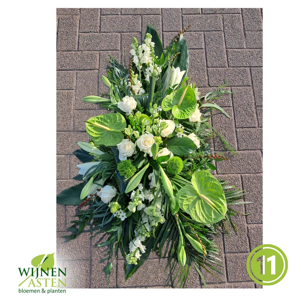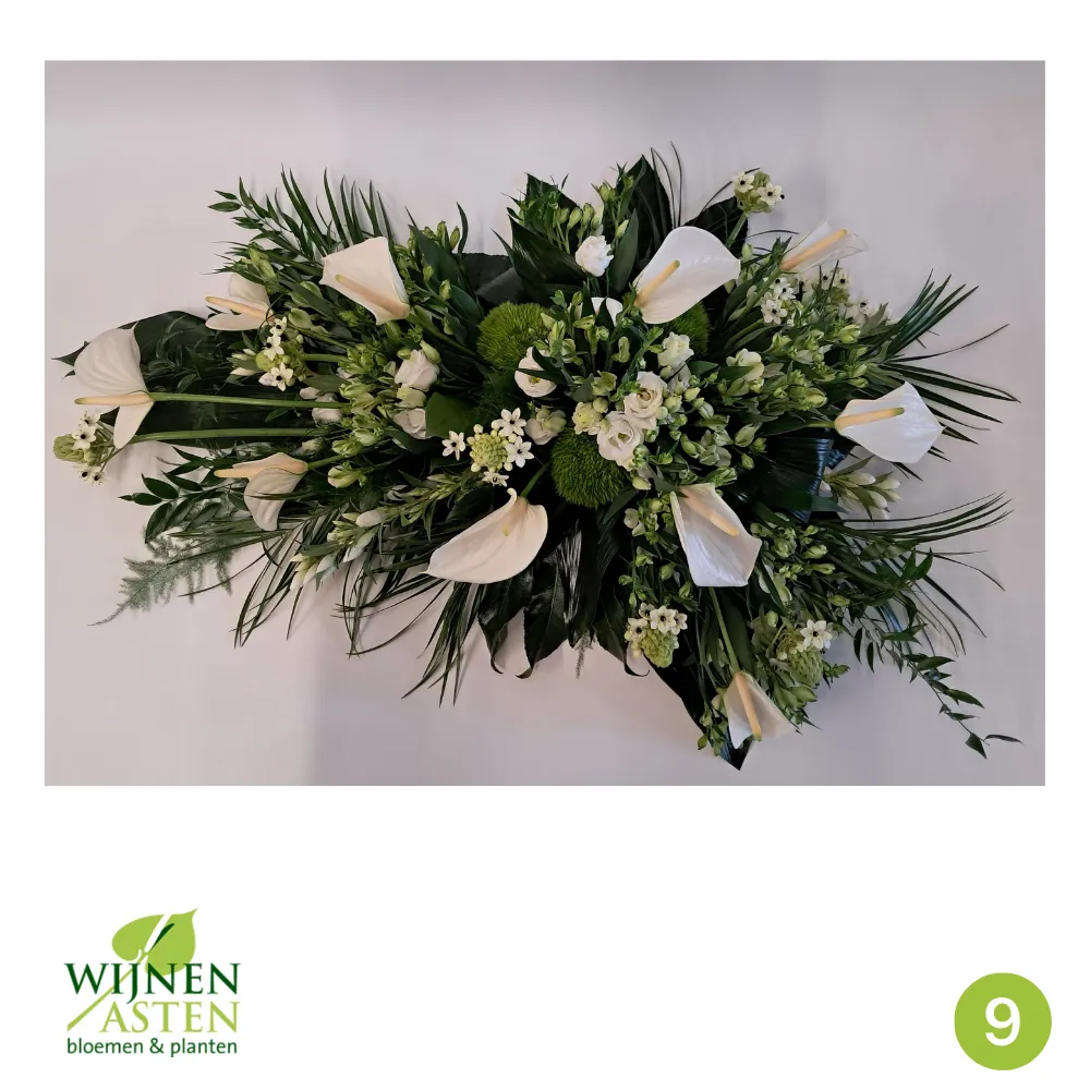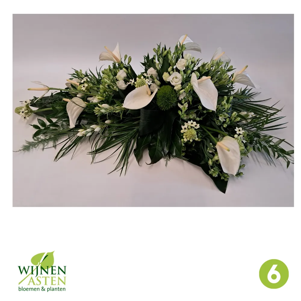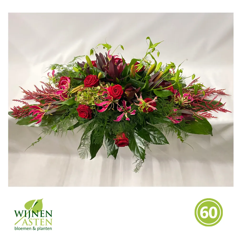 Rouwarrangementen Rouwbloemen en arrangementen bieden een persoonlijke manier om afscheid te nemen.In onze collectie vind je onder andere rouwboeketten, kransen, harten en kistbedekkingen, in diverse kleuren en stijlen.Elk arrangement kan worden aangepast aan jouw wensen, met seizoensbloemen en een passend lint.In onze winkel geven we graag meer informatie en tonen we voorbeelden om samen de juiste keuze te maken.Bestellen kan ook eenvoudig via het online formulier. Vermeld daarbij duidelijk welk arrangement je wenst, eventuele kleurvoorkeuren en de gewenste leverdatum.Zo zorgen we voor een respectvolle, zorgeloze bestelling op maat voor ieder bijzonder moment, met persoonlijke aandacht altijd.