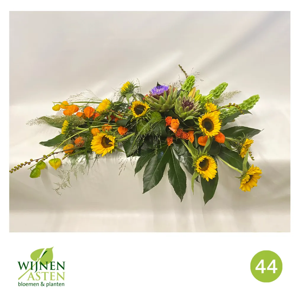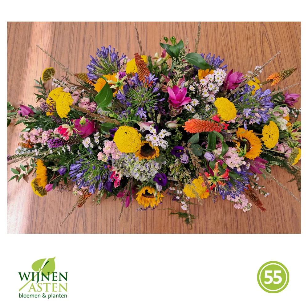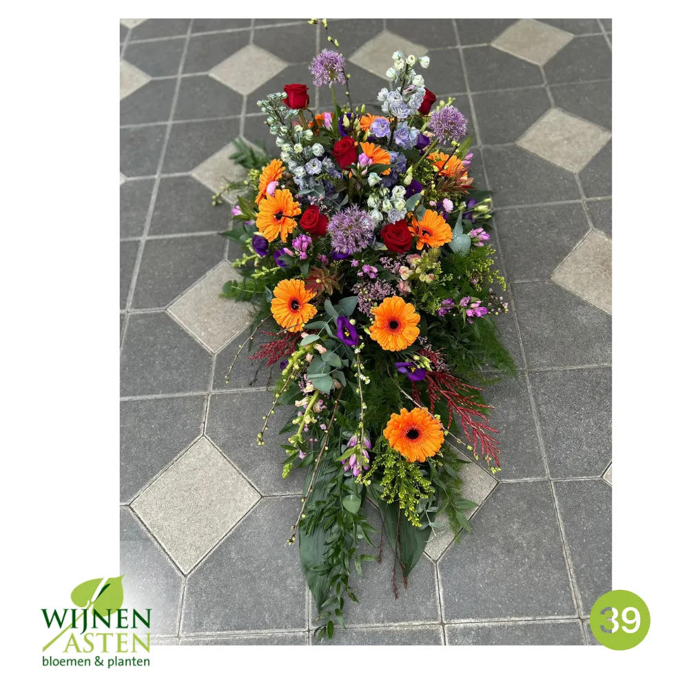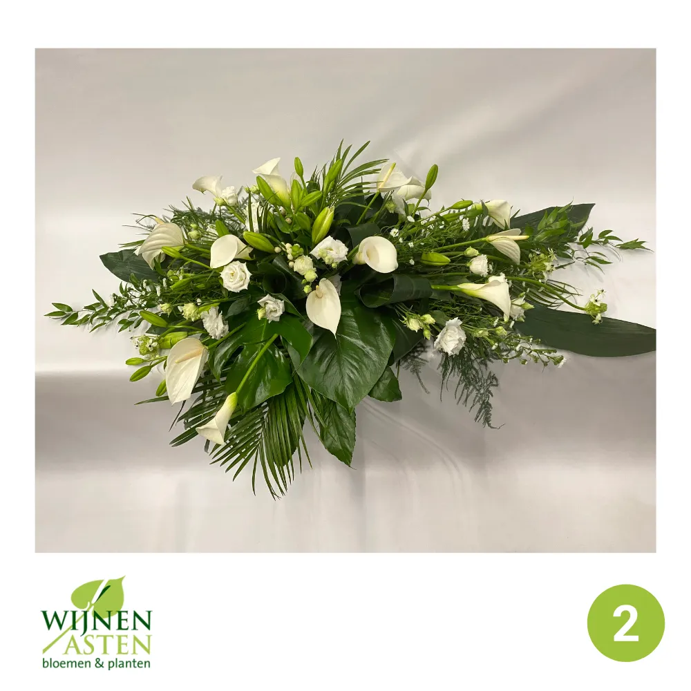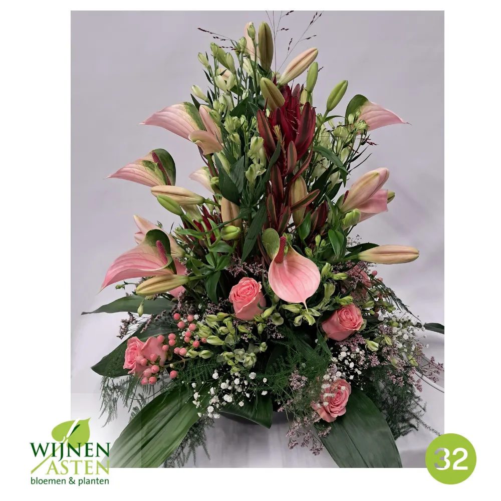 Rouwarrangementen Rouwbloemen en arrangementen bieden een persoonlijke manier om afscheid te nemen.In onze collectie vind je onder andere rouwboeketten, kransen, harten en kistbedekkingen, in diverse kleuren en stijlen.Elk arrangement kan worden aangepast aan jouw wensen, met seizoensbloemen en een passend lint.In onze winkel geven we graag meer informatie en tonen we voorbeelden om samen de juiste keuze te maken.Bestellen kan ook eenvoudig via het online formulier. Vermeld daarbij duidelijk welk arrangement je wenst, eventuele kleurvoorkeuren en de gewenste leverdatum.Zo zorgen we voor een respectvolle, zorgeloze bestelling op maat voor ieder bijzonder moment, met persoonlijke aandacht altijd.