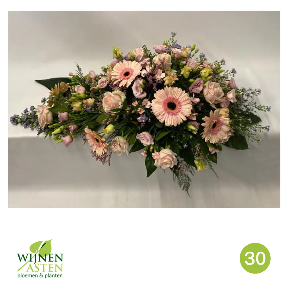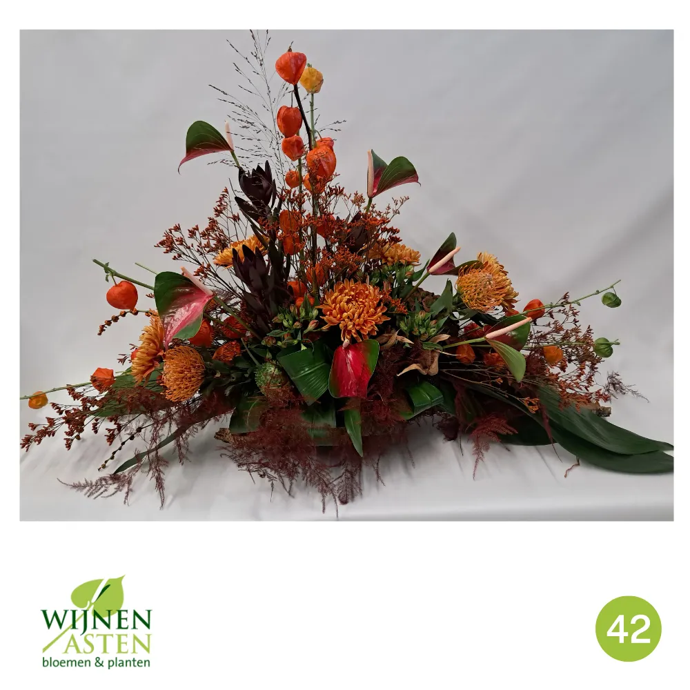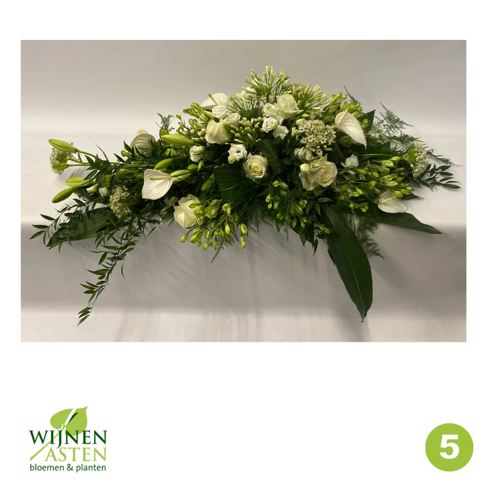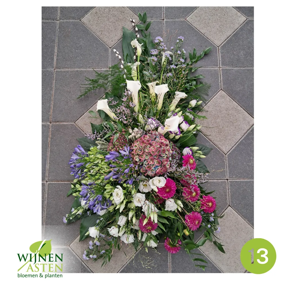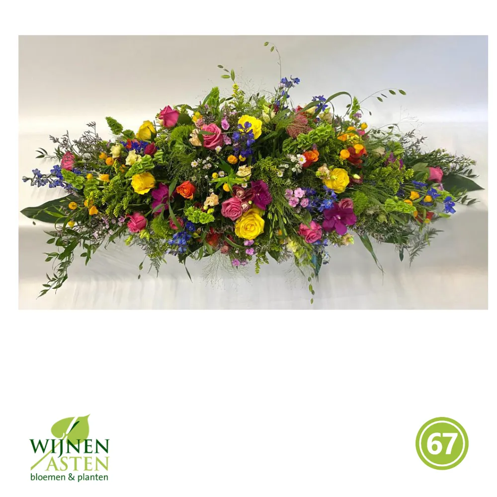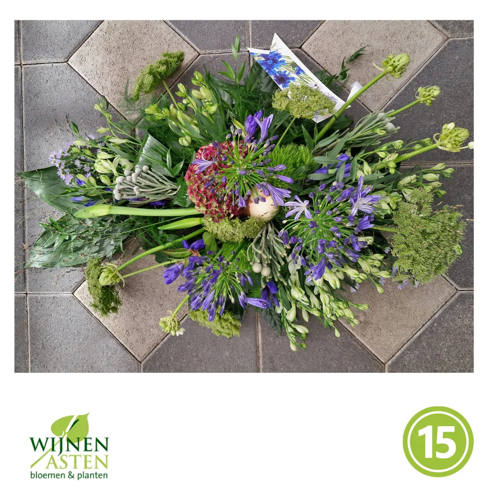 Rouwarrangementen Rouwbloemen en arrangementen bieden een persoonlijke manier om afscheid te nemen.In onze collectie vind je onder andere rouwboeketten, kransen, harten en kistbedekkingen, in diverse kleuren en stijlen.Elk arrangement kan worden aangepast aan jouw wensen, met seizoensbloemen en een passend lint.In onze winkel geven we graag meer informatie en tonen we voorbeelden om samen de juiste keuze te maken.Bestellen kan ook eenvoudig via het online formulier. Vermeld daarbij duidelijk welk arrangement je wenst, eventuele kleurvoorkeuren en de gewenste leverdatum.Zo zorgen we voor een respectvolle, zorgeloze bestelling op maat voor ieder bijzonder moment, met persoonlijke aandacht altijd.