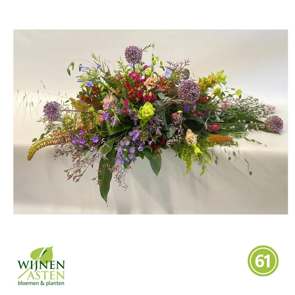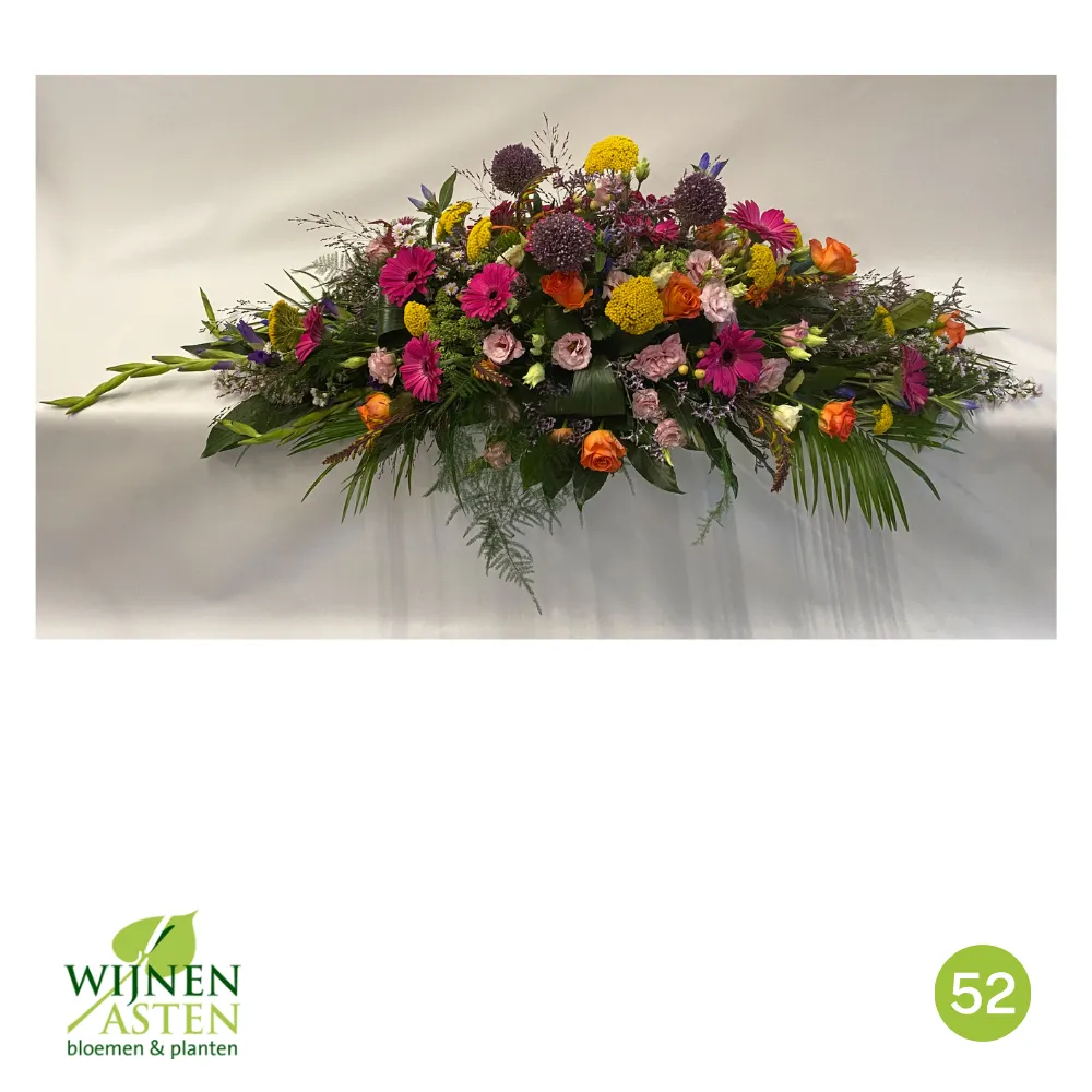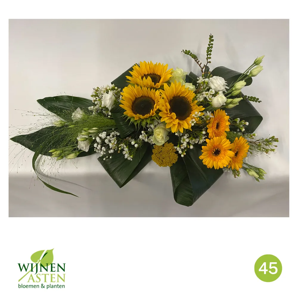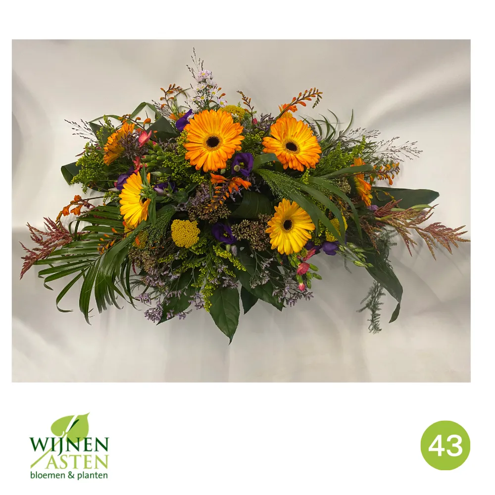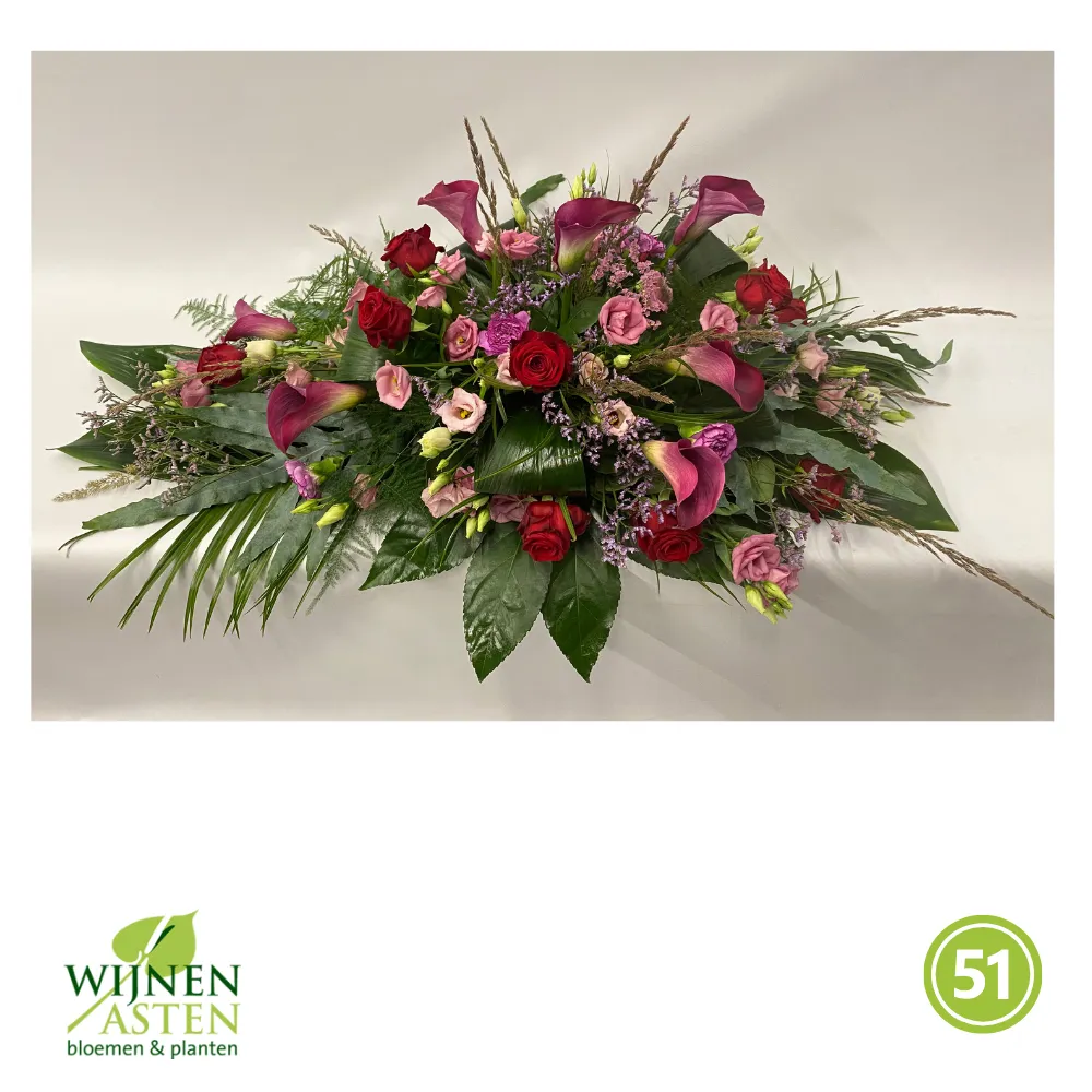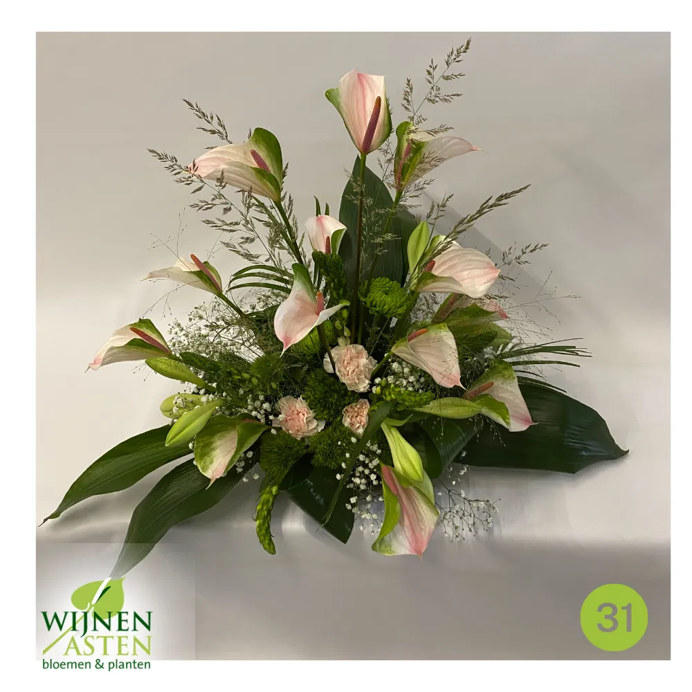 Rouwarrangementen Rouwbloemen en arrangementen bieden een persoonlijke manier om afscheid te nemen.In onze collectie vind je onder andere rouwboeketten, kransen, harten en kistbedekkingen, in diverse kleuren en stijlen.Elk arrangement kan worden aangepast aan jouw wensen, met seizoensbloemen en een passend lint.In onze winkel geven we graag meer informatie en tonen we voorbeelden om samen de juiste keuze te maken.Bestellen kan ook eenvoudig via het online formulier. Vermeld daarbij duidelijk welk arrangement je wenst, eventuele kleurvoorkeuren en de gewenste leverdatum.Zo zorgen we voor een respectvolle, zorgeloze bestelling op maat voor ieder bijzonder moment, met persoonlijke aandacht altijd.