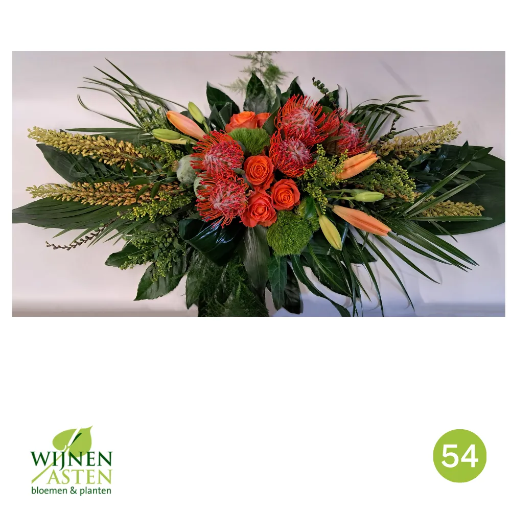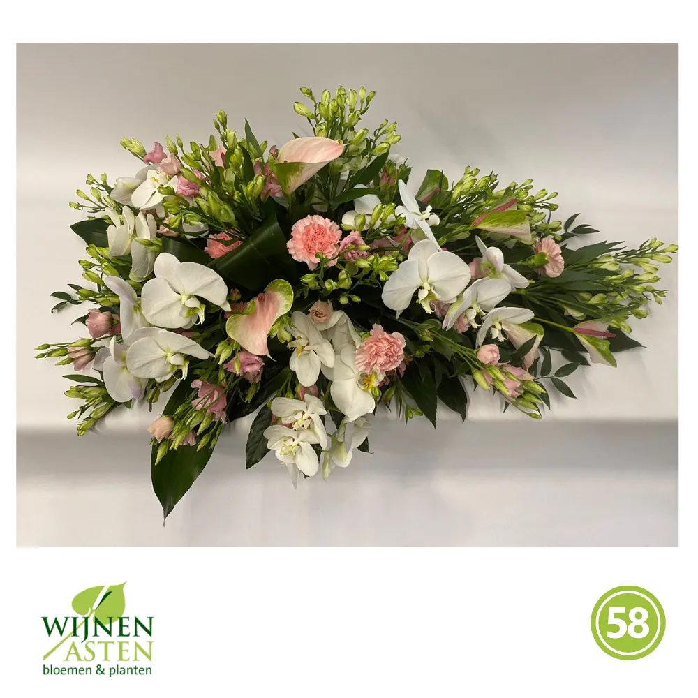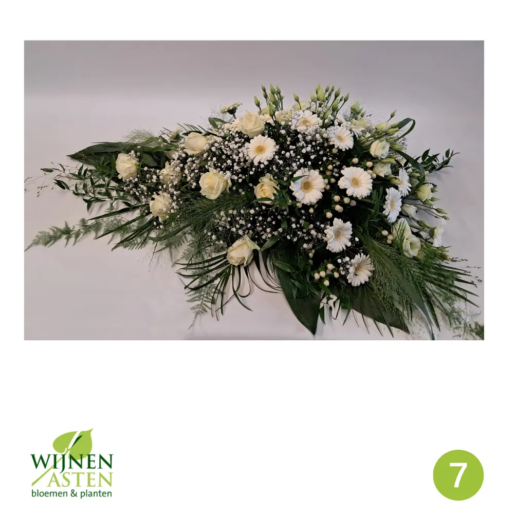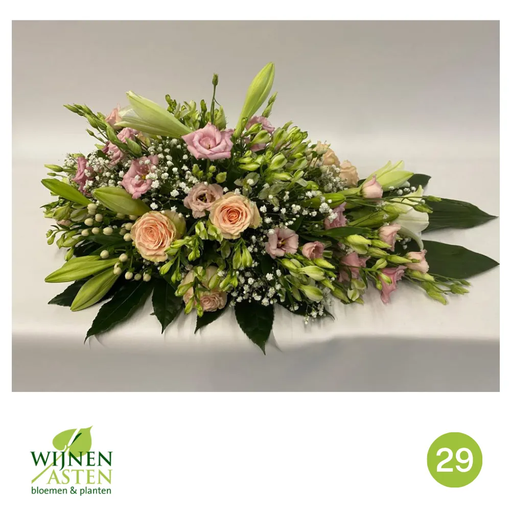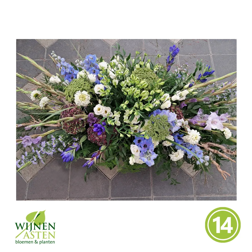 Rouwarrangementen Rouwbloemen en arrangementen bieden een persoonlijke manier om afscheid te nemen.In onze collectie vind je onder andere rouwboeketten, kransen, harten en kistbedekkingen, in diverse kleuren en stijlen.Elk arrangement kan worden aangepast aan jouw wensen, met seizoensbloemen en een passend lint.In onze winkel geven we graag meer informatie en tonen we voorbeelden om samen de juiste keuze te maken.Bestellen kan ook eenvoudig via het online formulier. Vermeld daarbij duidelijk welk arrangement je wenst, eventuele kleurvoorkeuren en de gewenste leverdatum.Zo zorgen we voor een respectvolle, zorgeloze bestelling op maat voor ieder bijzonder moment, met persoonlijke aandacht altijd.