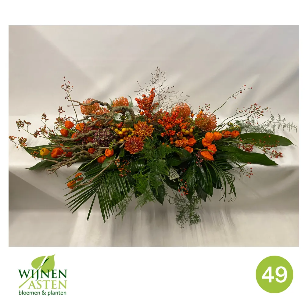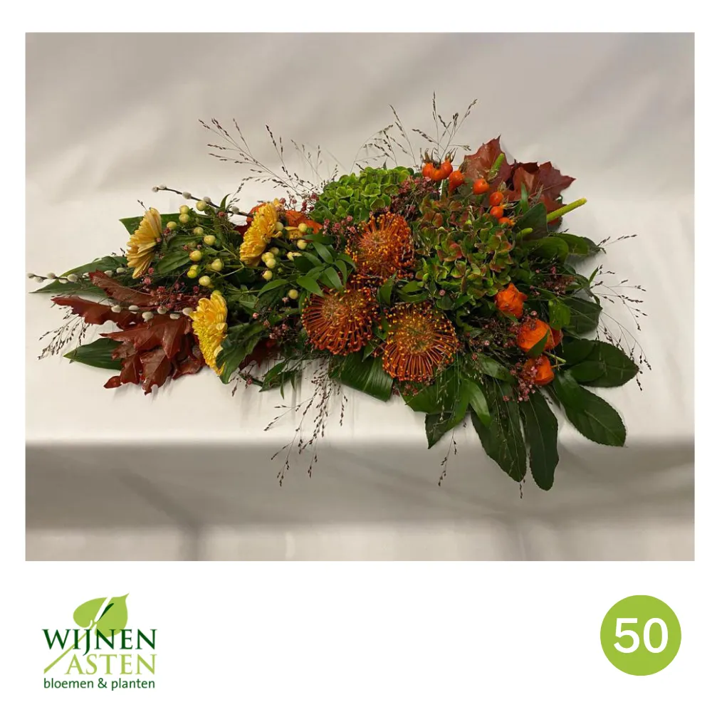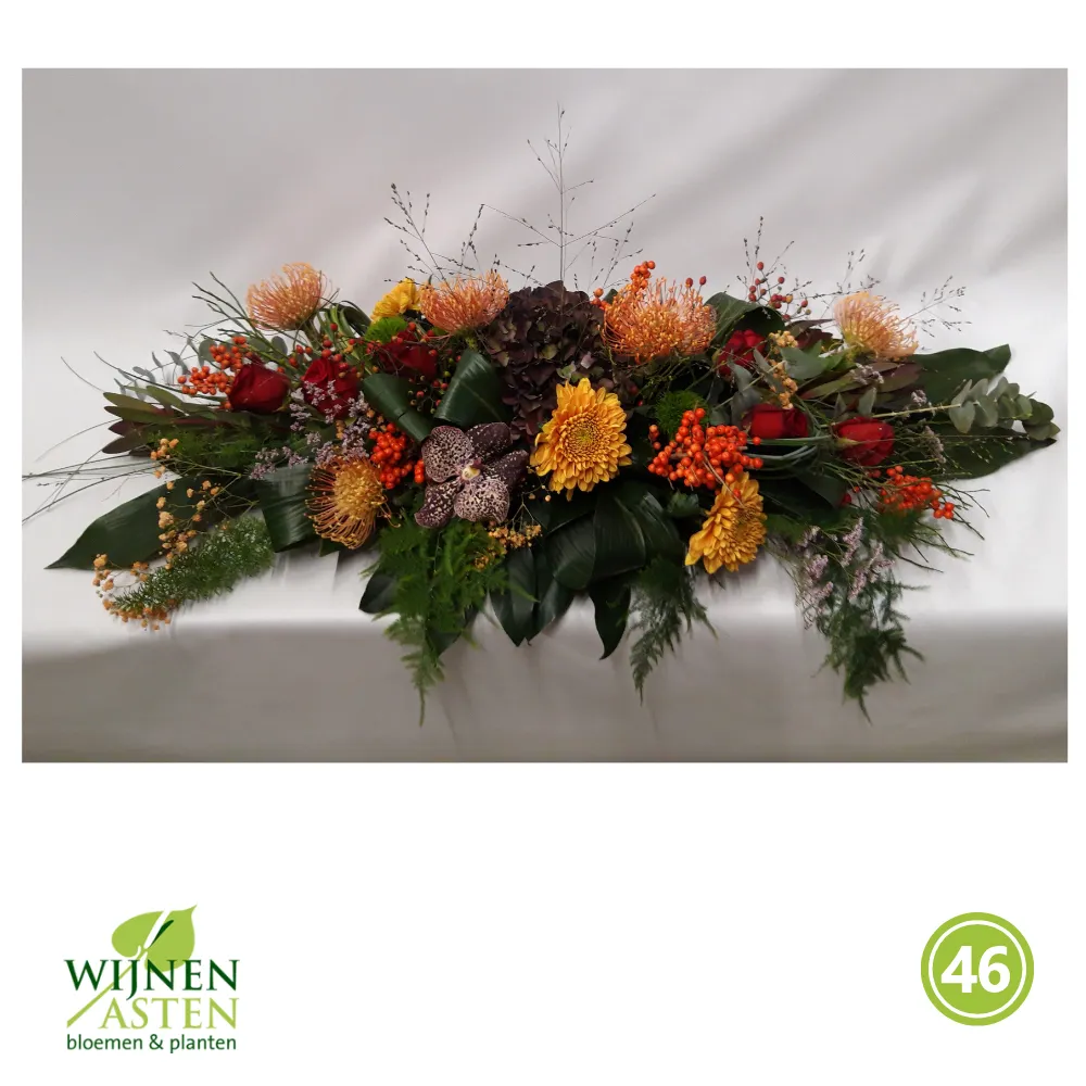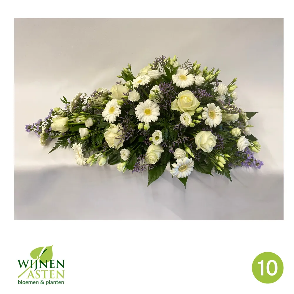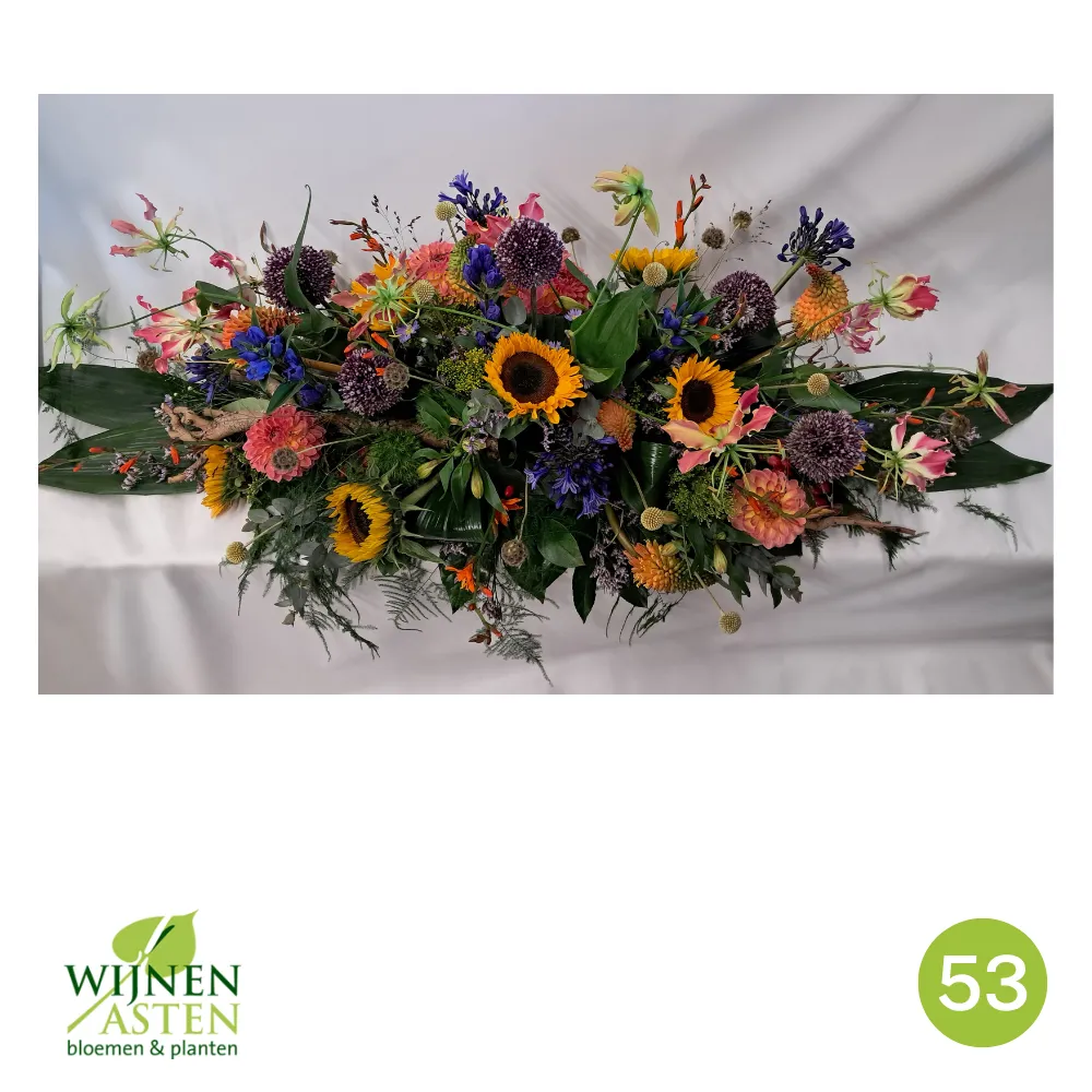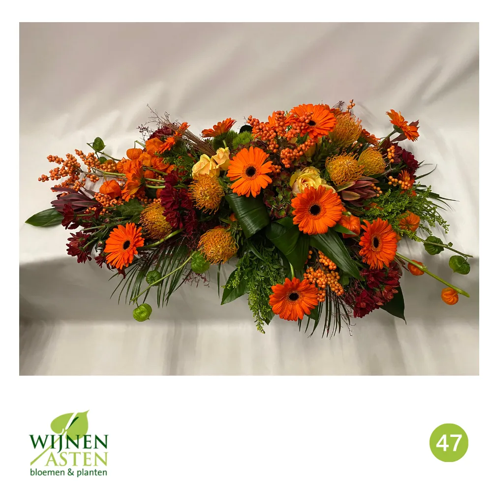 Rouwarrangementen Rouwbloemen en arrangementen bieden een persoonlijke manier om afscheid te nemen.In onze collectie vind je onder andere rouwboeketten, kransen, harten en kistbedekkingen, in diverse kleuren en stijlen.Elk arrangement kan worden aangepast aan jouw wensen, met seizoensbloemen en een passend lint.In onze winkel geven we graag meer informatie en tonen we voorbeelden om samen de juiste keuze te maken.Bestellen kan ook eenvoudig via het online formulier. Vermeld daarbij duidelijk welk arrangement je wenst, eventuele kleurvoorkeuren en de gewenste leverdatum.Zo zorgen we voor een respectvolle, zorgeloze bestelling op maat voor ieder bijzonder moment, met persoonlijke aandacht altijd.